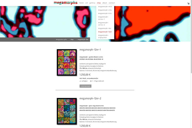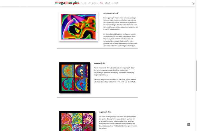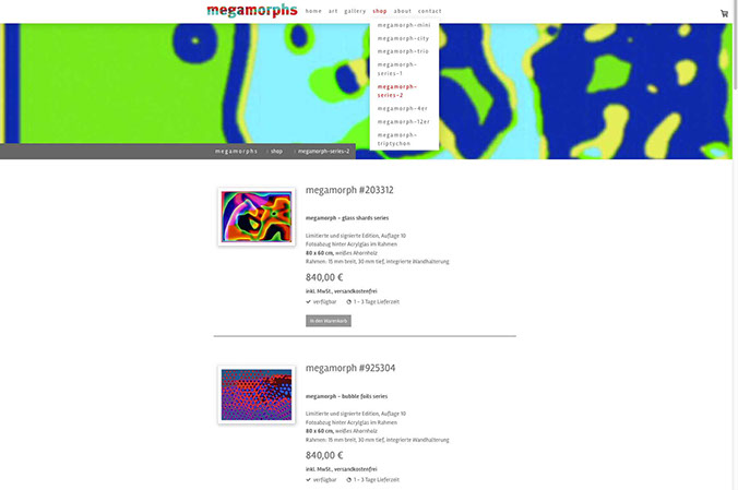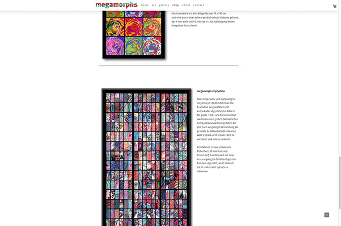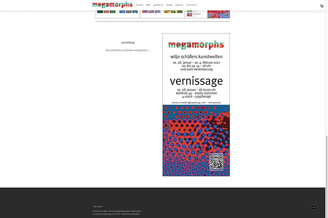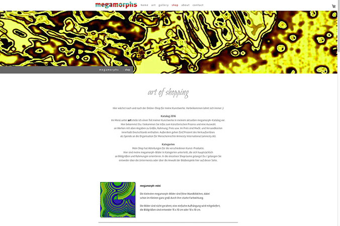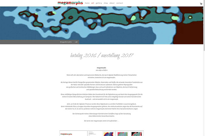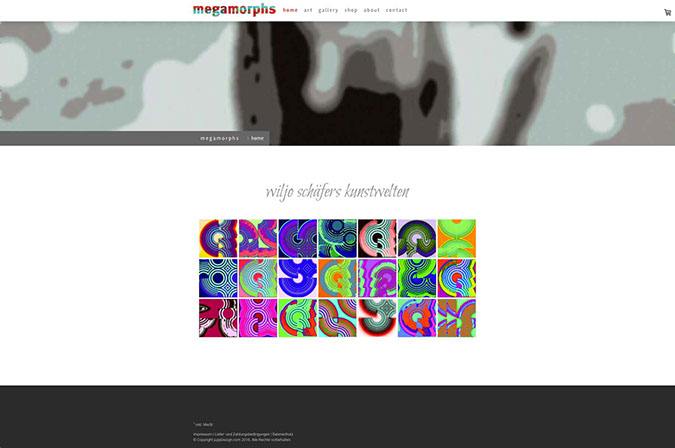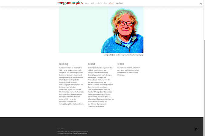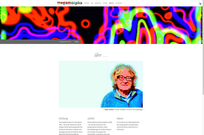 Webseite mit Shop Porträt des Künstlers Wiljo Schäfers, Mettmann, und Online-Plattform
