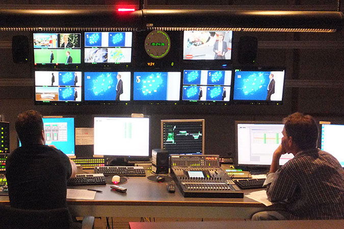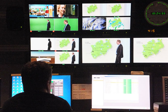 im Fernsehen und Vorbereitungen am Set.